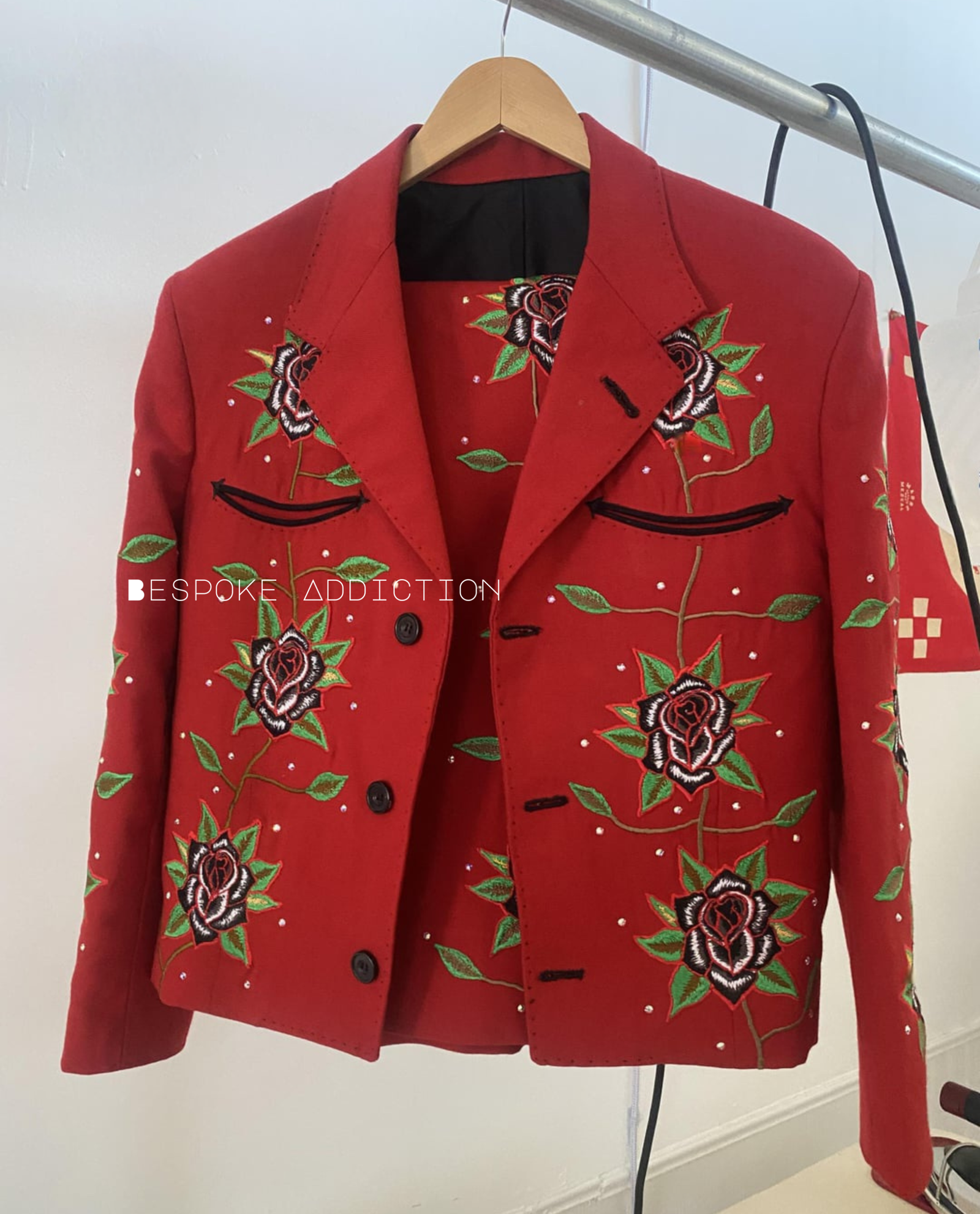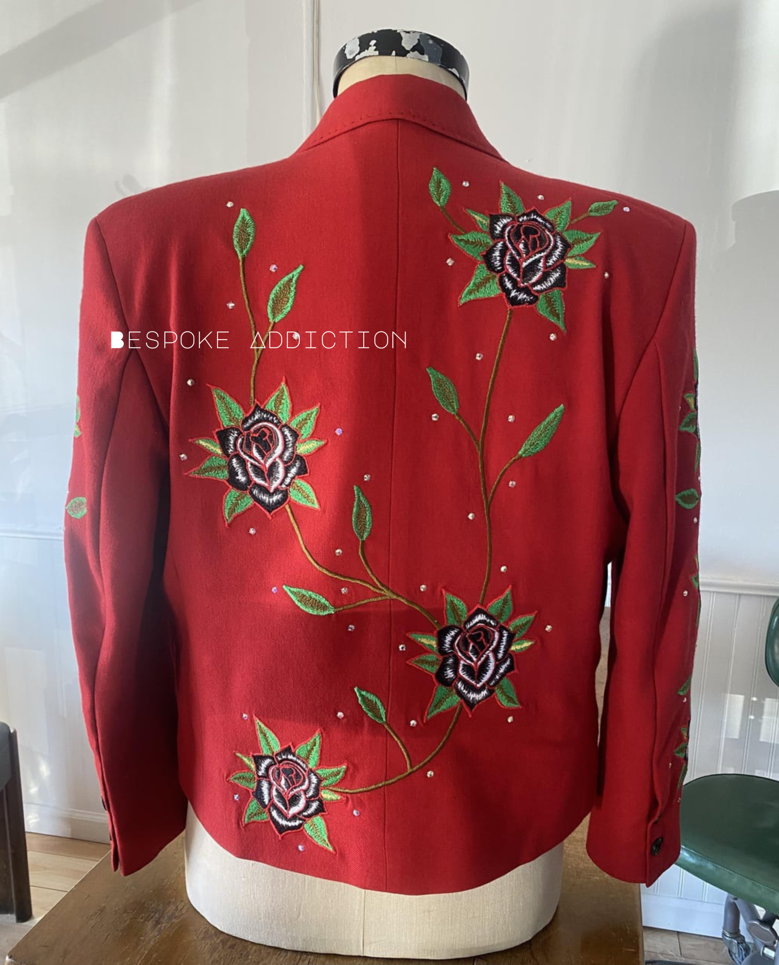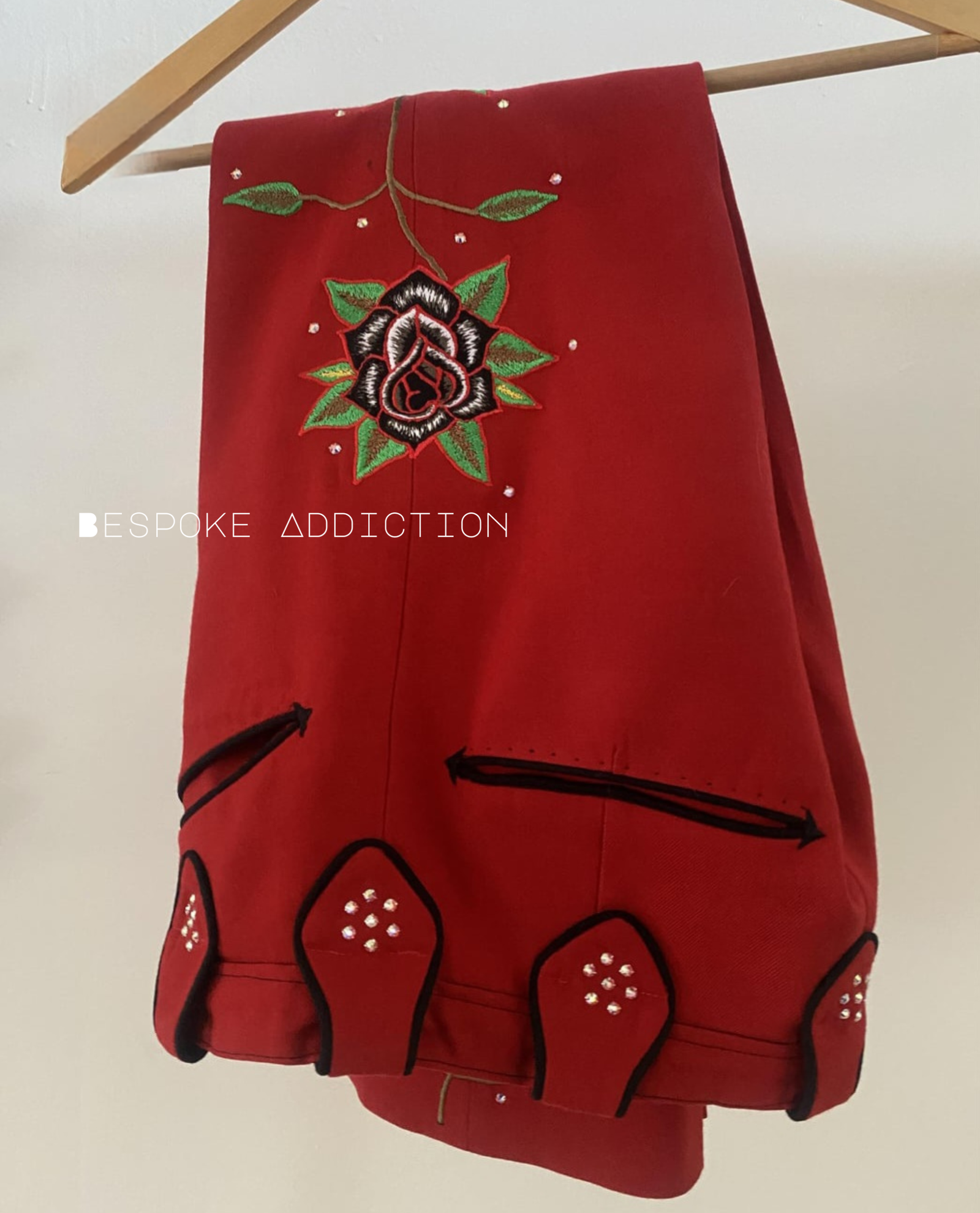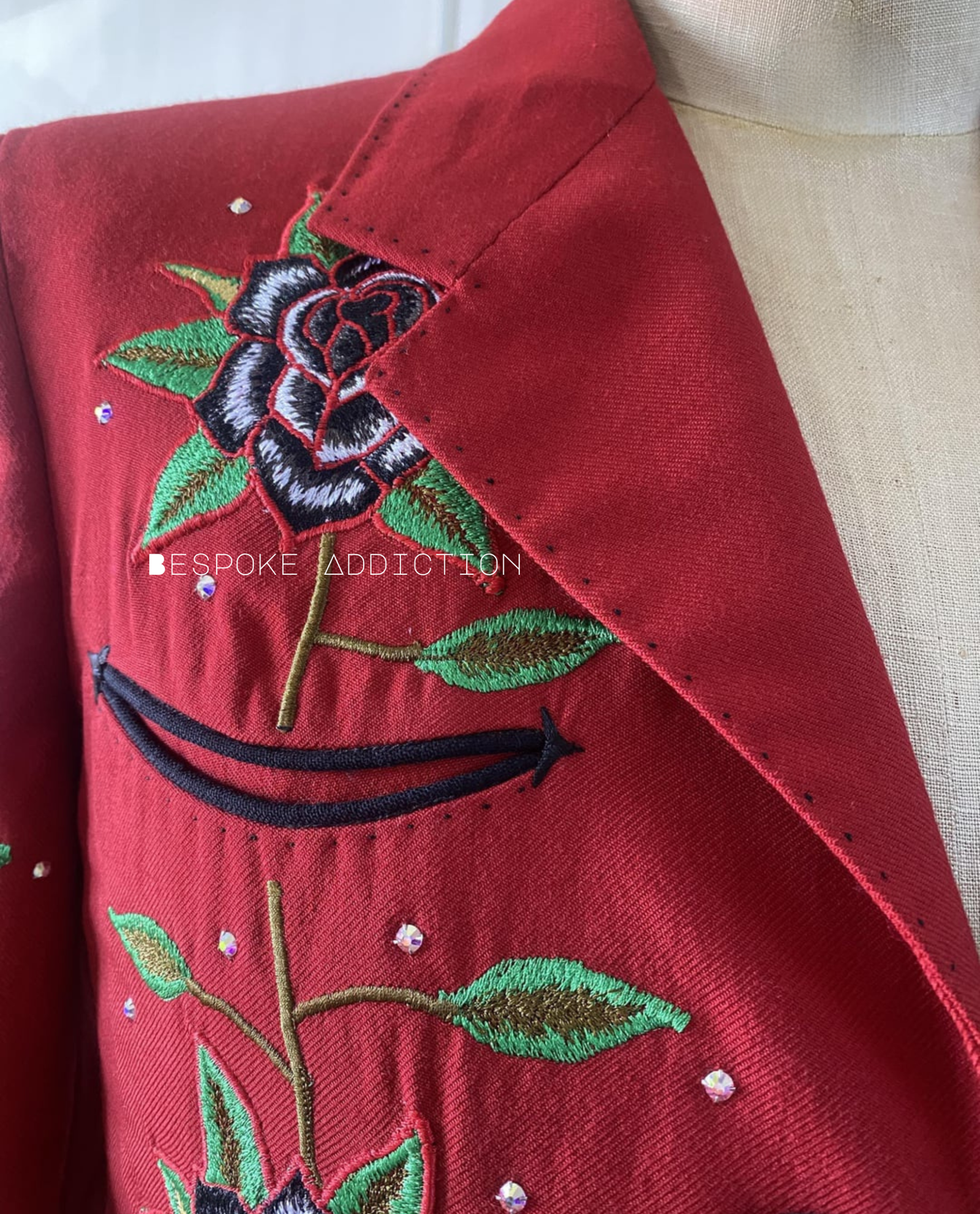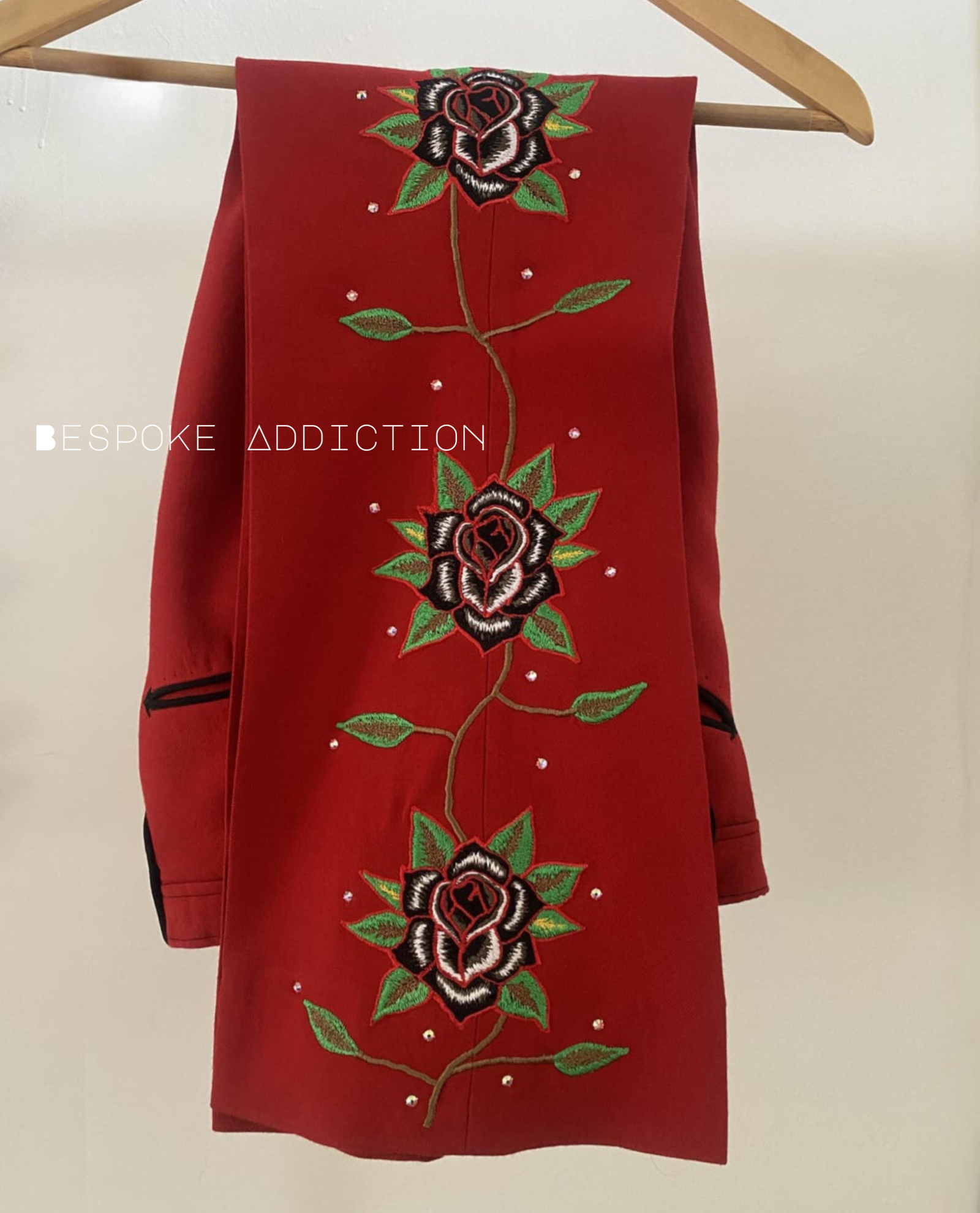 Home Shop Men 2Pc Red Customized Rose Leaf Embroidered Rhinestones Country Western Nudie Suit Vintage Wedding Stage Cowboy Groom Outfit
