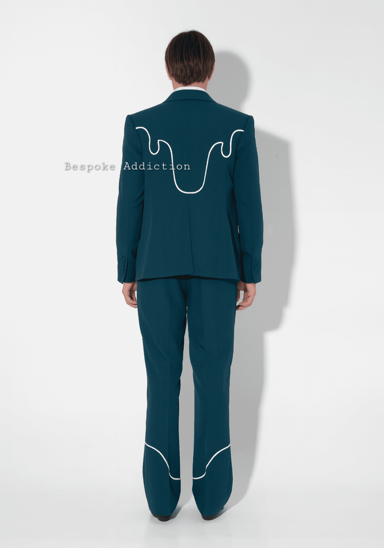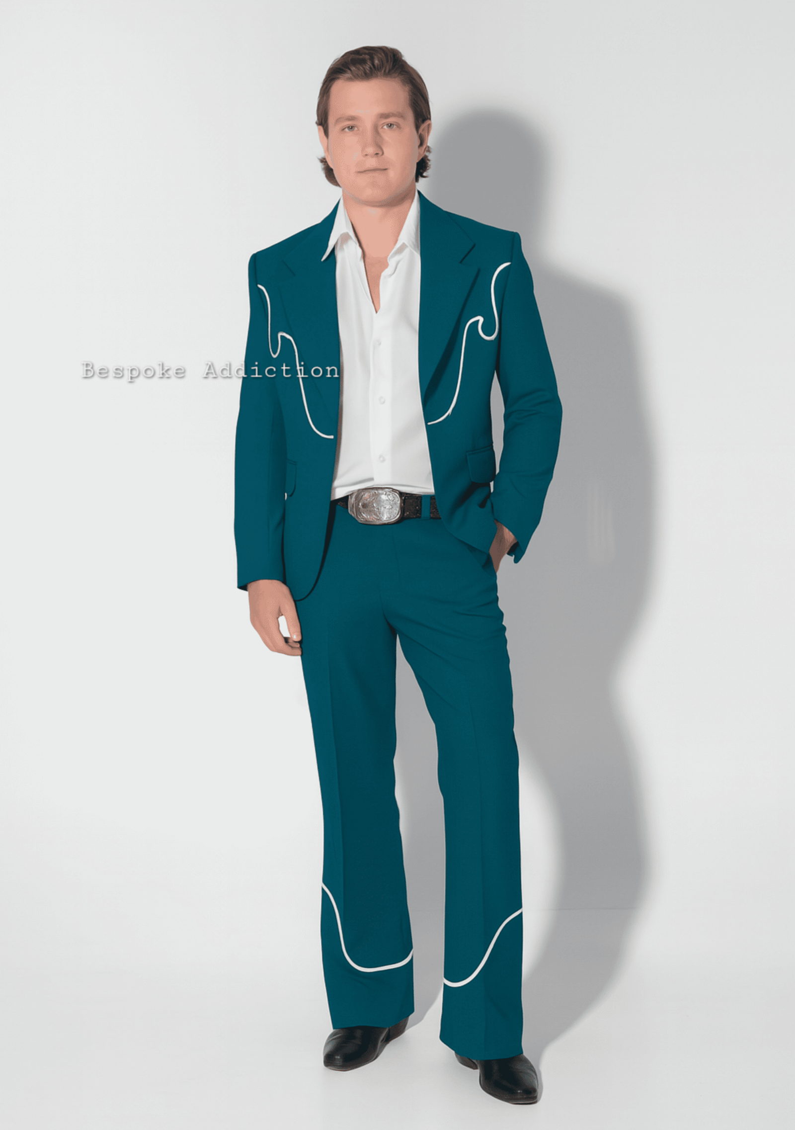 Home Shop Men Greenish Blue 2Pc Customized Piping Embroidered Vintage Country Western Nudie Suit Retro Party Wedding Groom Bespoke Attire