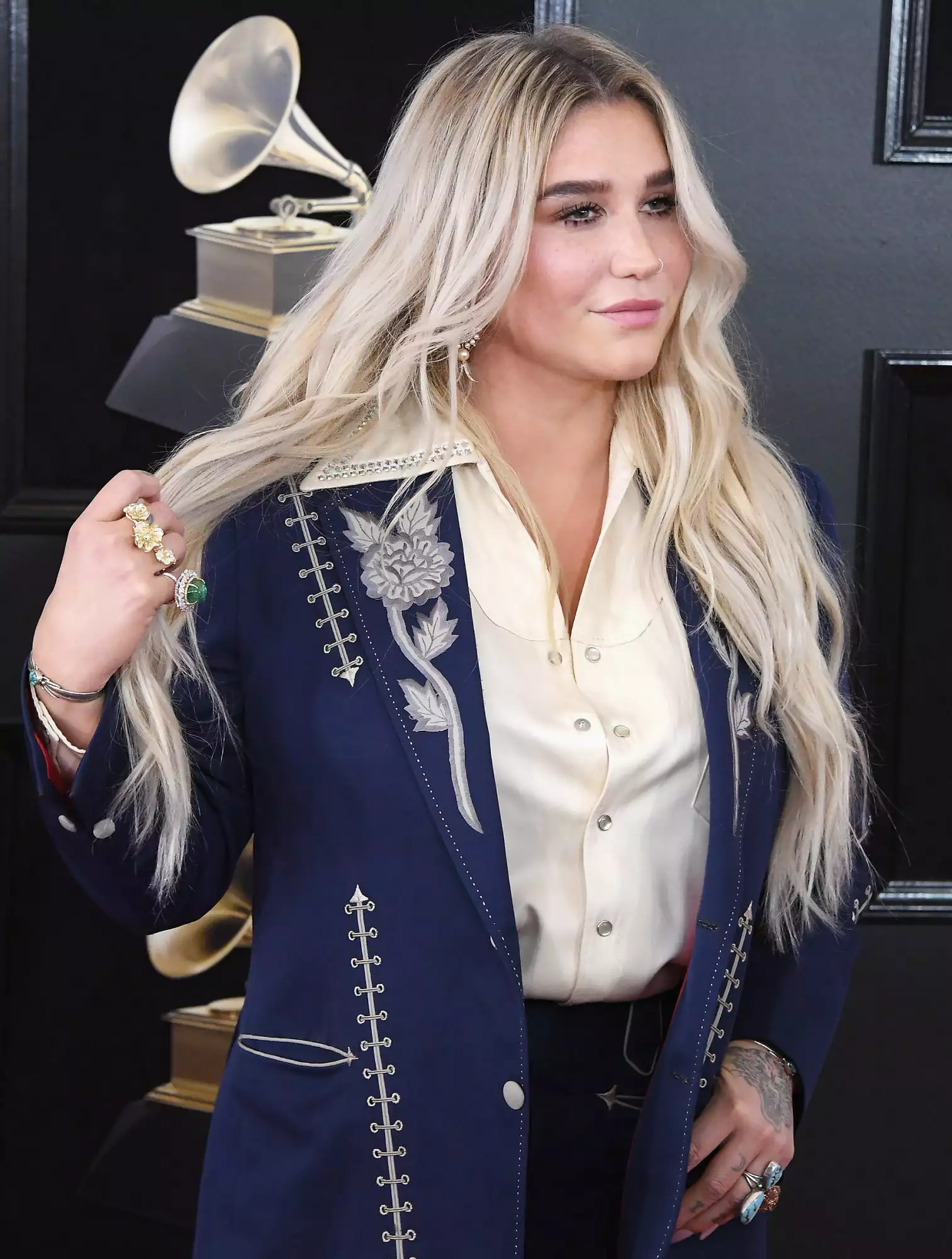Home Store Women Navy Blue 2Pc Customized Flower Piping Embroidered Country Western Nudie Suit Retro Vintage Wedding Party Outfit